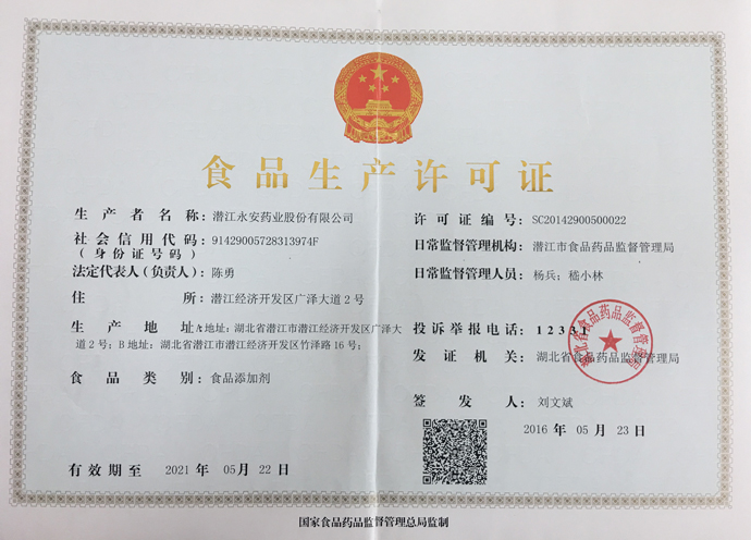 潛江永安藥業(yè)股份有限公司成立于2001年,坐落于江漢平原腹地潛江市國家高新技術產(chǎn)業(yè)開發(fā)區(qū),占地500余畝,注冊資金貳億玖仟肆佰陸拾捌萬貳仟伍佰元整,是一家擁有自主知識產(chǎn)權的國家高新技術企業(yè)。公司股票于2010年3 月5日在深圳證券交易所掛牌上市(股票代碼為002365)。公司具有雄厚的技術開發(fā)能力,是湖北省創(chuàng)新型企業(yè)和湖北省知識產(chǎn)權建設示范企業(yè)。公司研發(fā)平臺分別被認定為省級企業(yè)技術中心和湖北省功能性食品添加劑工程技術研究中心。 經(jīng)過多年的發(fā)展,公司形成了以食品及藥品添加劑牛磺
